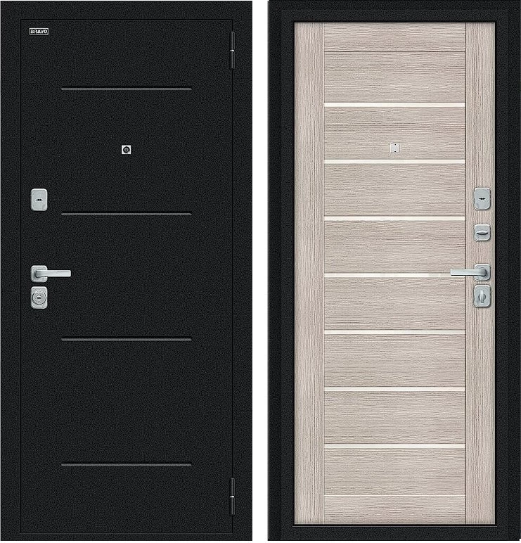 Надежная входная Дверь Браво Техно/BChrome Букле черное/Cappuccino Melinga премиум класса по цене 34 603 руб. Большая толщина стали защитит от проникновения в ваш дом, квартиру или коттедж. Используется очень качественная фурнитура: замки, цилиндры, ручки, защелки. Покрытие и отделка двери изготовлено под внимательным контролем производителя. Дверь имеет долгий срок службы и гарантию.